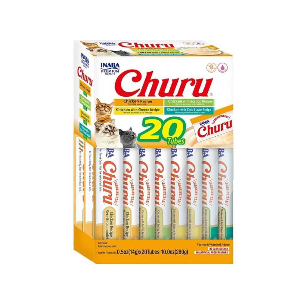 Selección de las mejores  recetas de Churu elaboradas con Pollo. 20 sobres variados. En verano puedes ponerlos en el congelador para refrescar a tu gatete