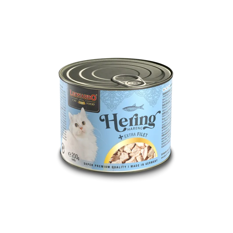 Nuestro delicioso menú de filete para todos los amantes del pescado. El sabroso arenque enriquecido con pavo y trozos de filete extra deliciosos. Cocinada suavemente en su propio jugo, se convierte en una irresistible delicia de carne con una experiencia de masticación especial. El aceite de salmón da el toque final a las recetas y aporta ácidos grasos poliinsaturados para un pelaje sedoso. Naturalmente sin azúcar ni colorantes, saborizantes ni conservantes artificiales.