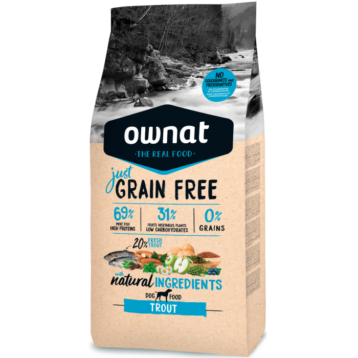 La elaboración con un 20% de trucha fresca aporta proteínas de máxima calidad nutricional y un alto nivel de ácidos grasos omega 3 que benefician la salud de la piel, el pelo y el sistema inmunitario. Asimismo, la proporción equilibrada de sus ingredientes asegura una óptima nutrición para perros adultos.