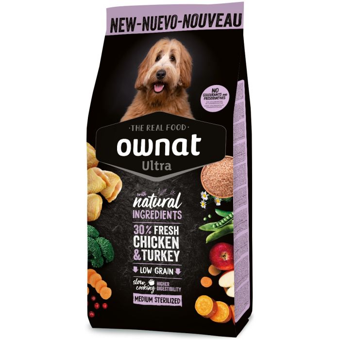 Comida para perros, en especial para perros de razas medianas esterilizados, que tienen menores necesidades energéticas y son más propensos al sobrepeso. Su composición ayuda al mantenimiento del peso ideal al incorporar una baja cantidad de grasas manteniendo al mismo tiempo una elevada proporción de proteínas para asegurar una óptima condición corporal.